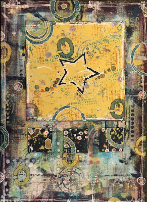 (StencilGirl Products Stencils Discovery, Techno Circle; Spellbinders Robo Star Die Set)Gwen Lafleur