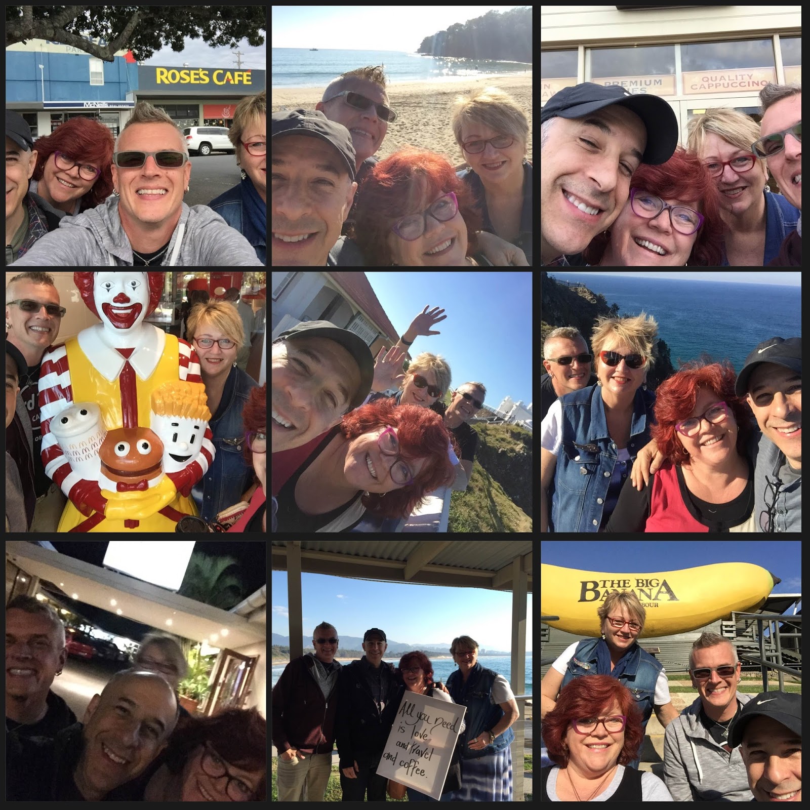 Happily, John Creighton Peterson, Linda Lucas and I had a few extra days to stay together with Sallianne McClelland as we drove together in the van (filled with luggage) from Noosa back to Sydney. We took a selfie at every stop and here are just a few!