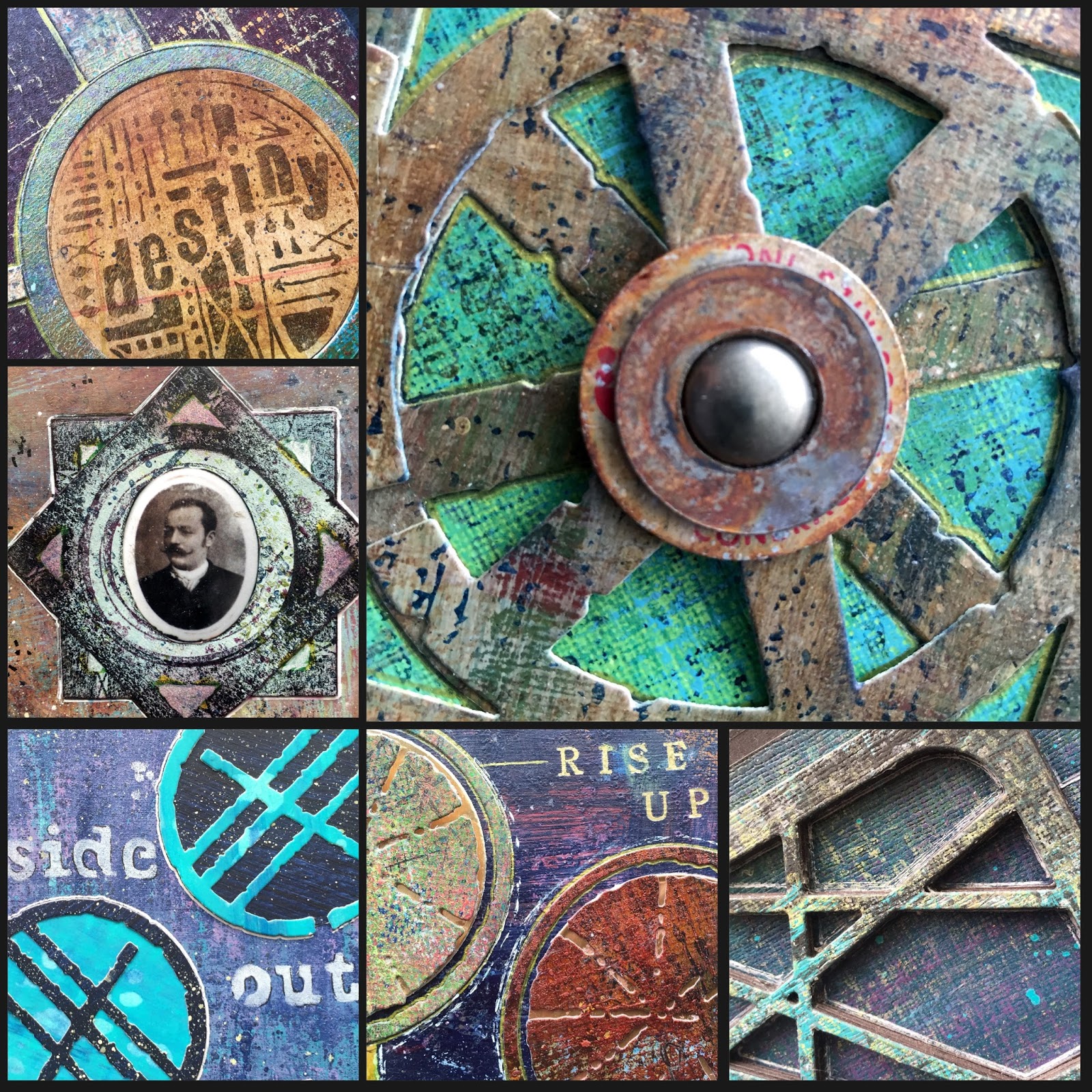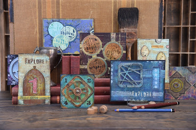 Today I am guest posting on the Spellbinders blog and continuing to share the release of my newest collection of dies, stamps and die & stamp sets. These were all designed with flexibility in mind. They are abstract in nature so that you can truly make them your own. Each of the new items works equally well in mixed media projects, art journaling, card making or scrapbooking. And they are all designed to work together and to mix & match with my first release from Spellbinders as well as my stencils from StencilGirl and stamps from Impression Obsession.