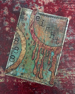Given my love of circles, the number 8 has always been special to me. Using rub-ons, I embellished the card with several 8s...