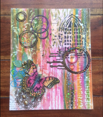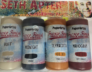 Using PaperArtsy Fresco Finish Chalk Acrylics, I covered the surface with a variety of colors...