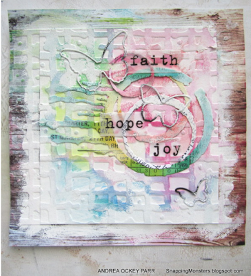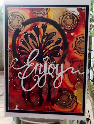 You can create beautiful mixed media backgrounds using my three new Cover-a-Card stamps from Impression Obsession.