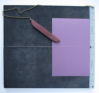 My all-time favorite and most often used tool is the Scor-It Board. Originally designed )and built neat a time) by Tim Hammonds, who worked in the printing industry, it was eventually manufactured by Zutter Innovative Products and is, sadly, no longer in production. The lines that are scored produced a "hinged" score - a raised ridge that is the inside of the fold. The lines can be used for decorative embossing and debossing too. Jo Murray