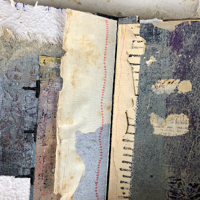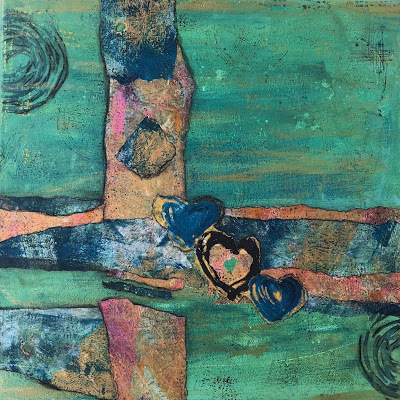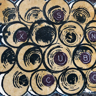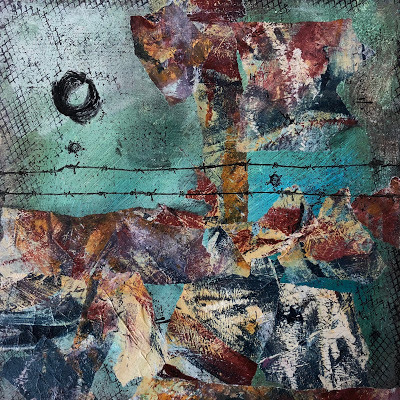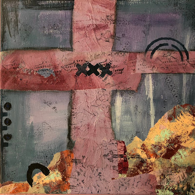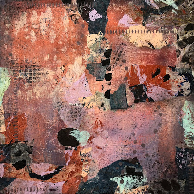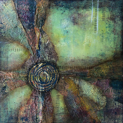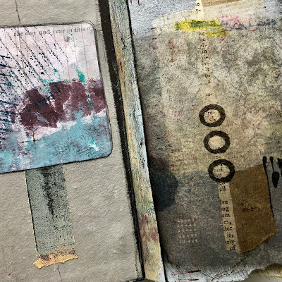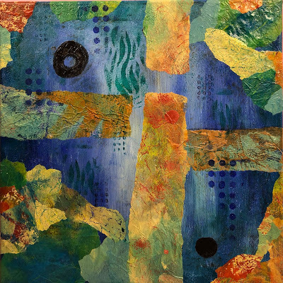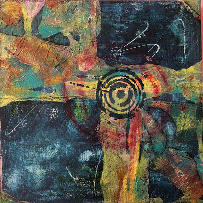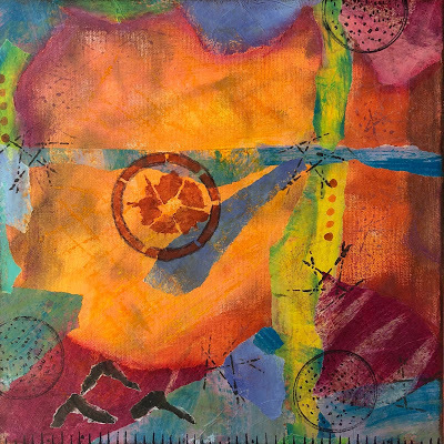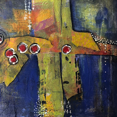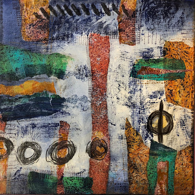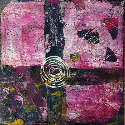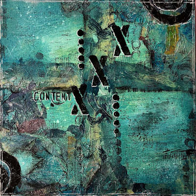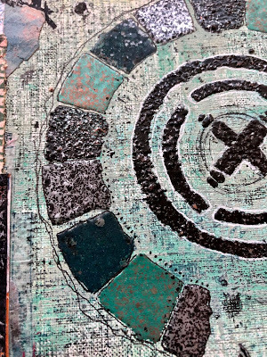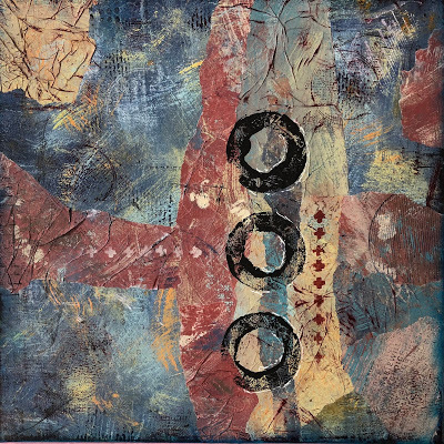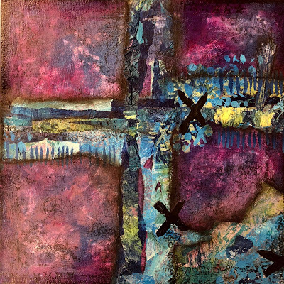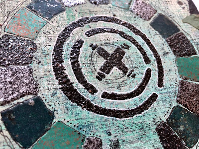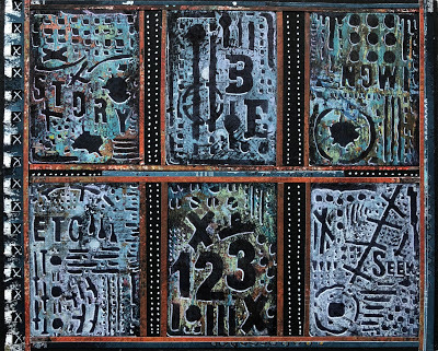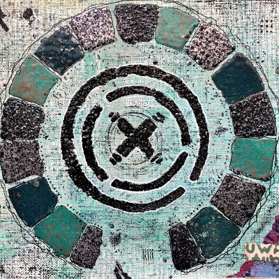 The other three segments are filled with repeating patterns of symbols - grungy rectangles, crosses and circles. Perfect as is or just right for adding to your mixed media backgrounds.