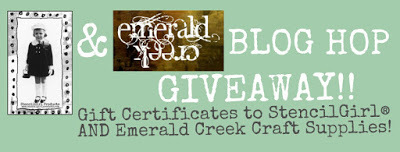 One lucky winner will receive $50 in Gift Certificates to Emerald Creek and StencilGirl Products!Enter to win by leaving a comment below.Then be sure to visit the other blogs in the hope and comment to win.The more blogs you comment on, the more chances you have to WIN!One winner will be chosen at random from all blog comments!(One comment per blog please.)
