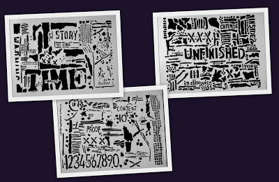 Looking to go large? See my original three stencil releases that fill a full 9" x 12" stencil with grungy goodness.