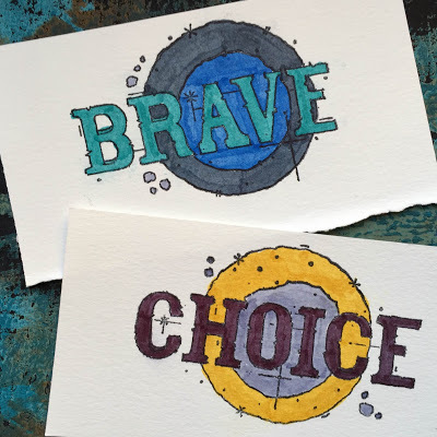 Clearsnaps ColorBox Fluid Chalk Inks - specifically their Cat's Eyes. Seriously I dread the day they decide to stop making them. I use them on virtually every piece on the outside edge, as a frame; to distress or add a touch of color to cut out text; and always with stencils. It is my go-to ink.-------------------