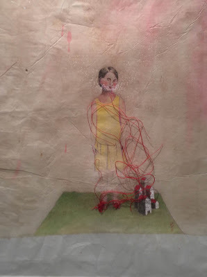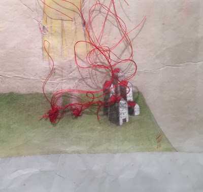 Stitch. Stitch can be a mark making device, it can hold layers together to be an embellishment. Stitch can be real by the use of thread or implied by painting/drawing.Kathy Fritz