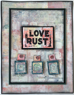 It is always exciting to see how artists use my products to create art and that is definitely the case when the artist is the company boss. Leandra Franich who, along with Mark Franich, runs PaperArtsy has made a wonderfully layered artwork using one of my just-released, PaperArtsy stamp set.