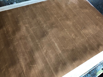 Start with a non-stick, teflon craft mat. Pretty sure that 99% of you peeps have one (or more). My mat is taped to a moveable glass board.