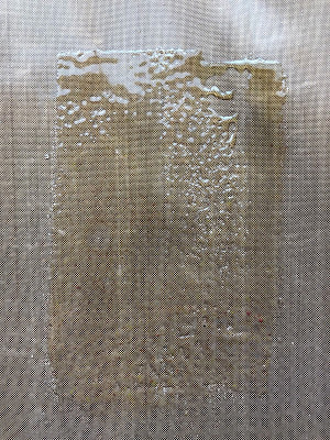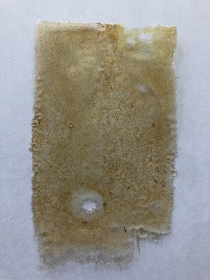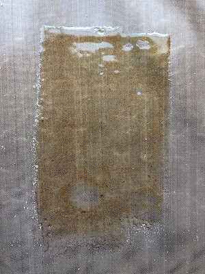 Peel off and voila. Notice that there are several holes and a bit of a feathering at the end. I think this makes the skin more natural but you can always add extra powder and melt again if you prefer a smoother surface.