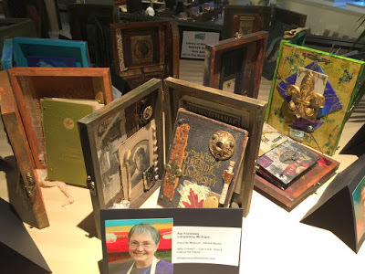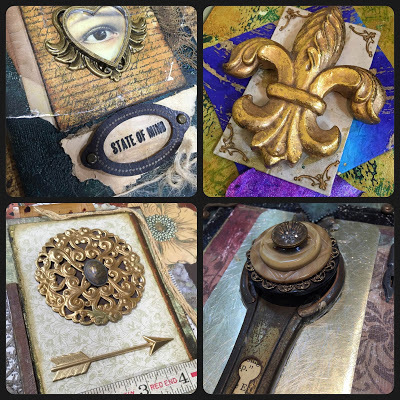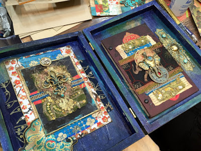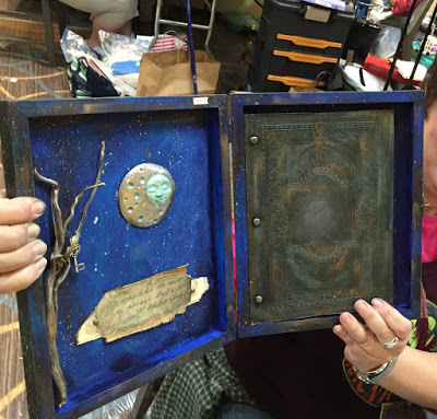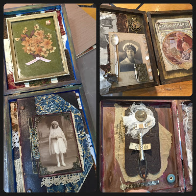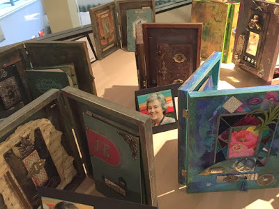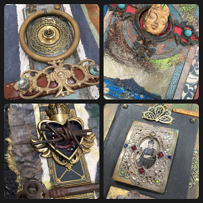 Earlier this month, I taught a very special workshop at Art is You in Stamford, Connecticut. I spent 3 days with 20 creative souls, each of whom made their own Library of Memories. I will share more details about and images from the class in an upcoming blog post. For now, here are some details from their pieces in progress: