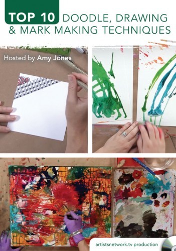 This video brings together segments from previously released DVDs that focus on mark making, doodling and drawing techniques perfect for mixed media art and journaling. My segment focuses on using splattering, dry brushing and mark making. This is culled from one of my earlier DVDs Easy Mixed Media Techniques for the Art Journal , which shows you step-by-step how to create the journal pictured below.