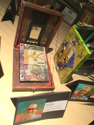 The project involved creating a painted and embellished hinged box that held an assemblage and a handmade book.