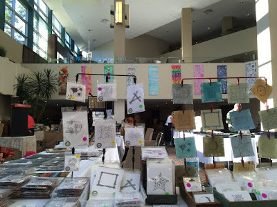At every Art is You retreat there is an art trunk, where teachers and other vendors sell their art and supplies. I had a table there where I sold my stamps, stencils, books, DVDs, and artwork.
