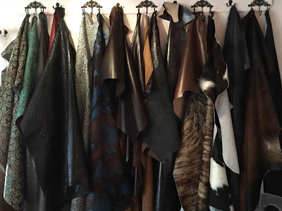 Right next door is Texas Carpet Baggers. Becky Feeley, the owner, creates the most amazing handcrafted bags from leather, suede and other high-end materials. I knew I was in Texas when I saw her wall of hides. I kept thinking they would make incredible book covers.