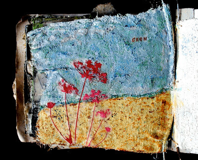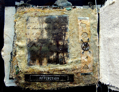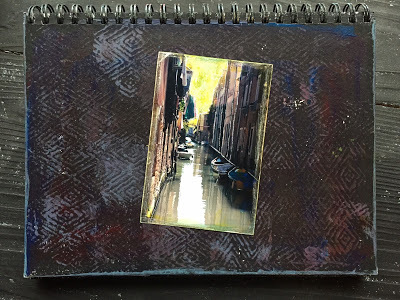 I also have a smaller journal that I hand bound myself and that is used as a more traditional journal - with a lot of writing. All of the pages have been prepainted with watercolor washes and there is collage added as well. This journal is there for me when images won't do and I need to use my words. I do not journal in this book as often as my visual journal - but it is there whenever I am compelled to reach for it. And unlike my visual journal, this smaller one is private and not shared with anybody on line or IRL.