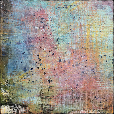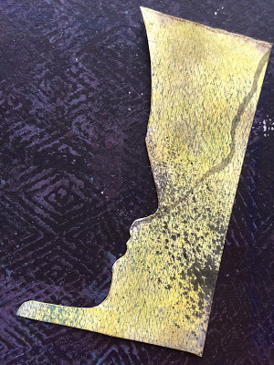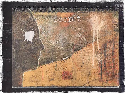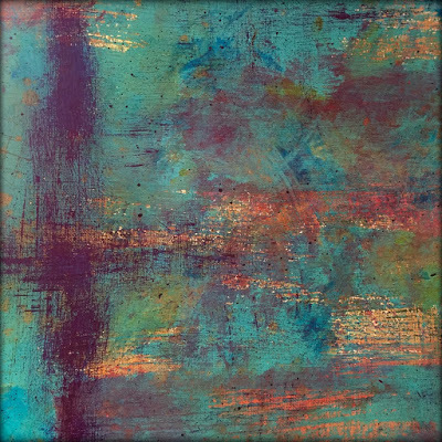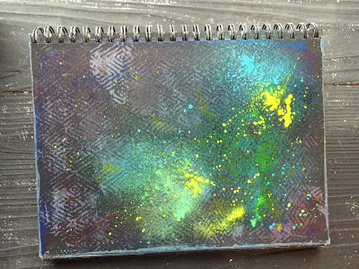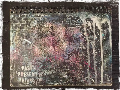 When I first started this journal, I painted black gesso on every page. The backgrounds, including this one, are created pretty organically -- marked and painted along the way as I create other art.