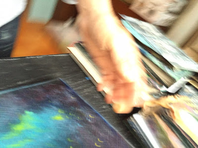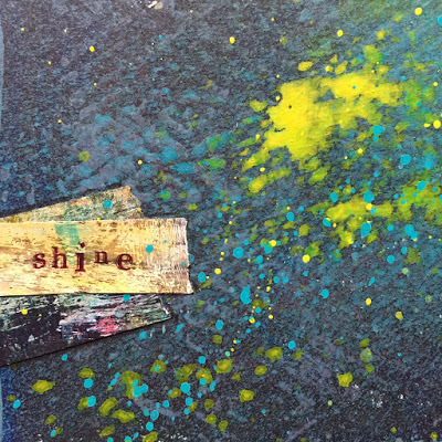 Since the quote for this project focused on both light and shadow, I decided to add some brightness to the dark background with some sprays and splatters of acrylic paint.
