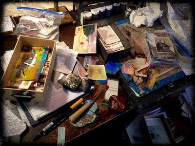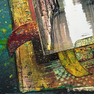 The fun really began at that point as I dug into my stash of painted paper, ephemera and collage material and made this mess.