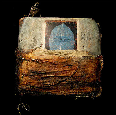 Back in 2009 I was involved with a collaboration with artists Bridgette Guerzon Mills and Jen Worden. The main idea was to challenge and experiment with our creative skills. I created a handbound, vintage paper book with the theme Contexture. Jen created a series of loose metal pages with the theme Shine. Bridgette created a book with plaster pages with the theme Book of Trees.