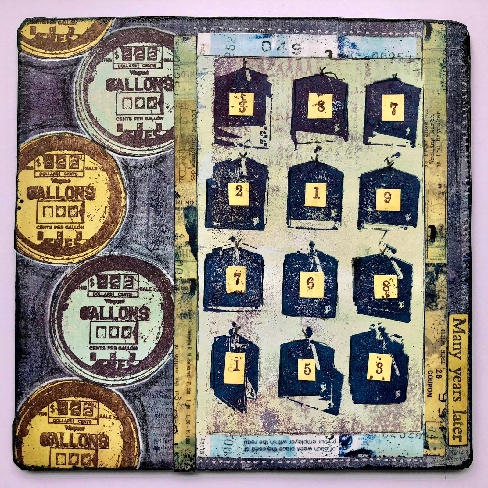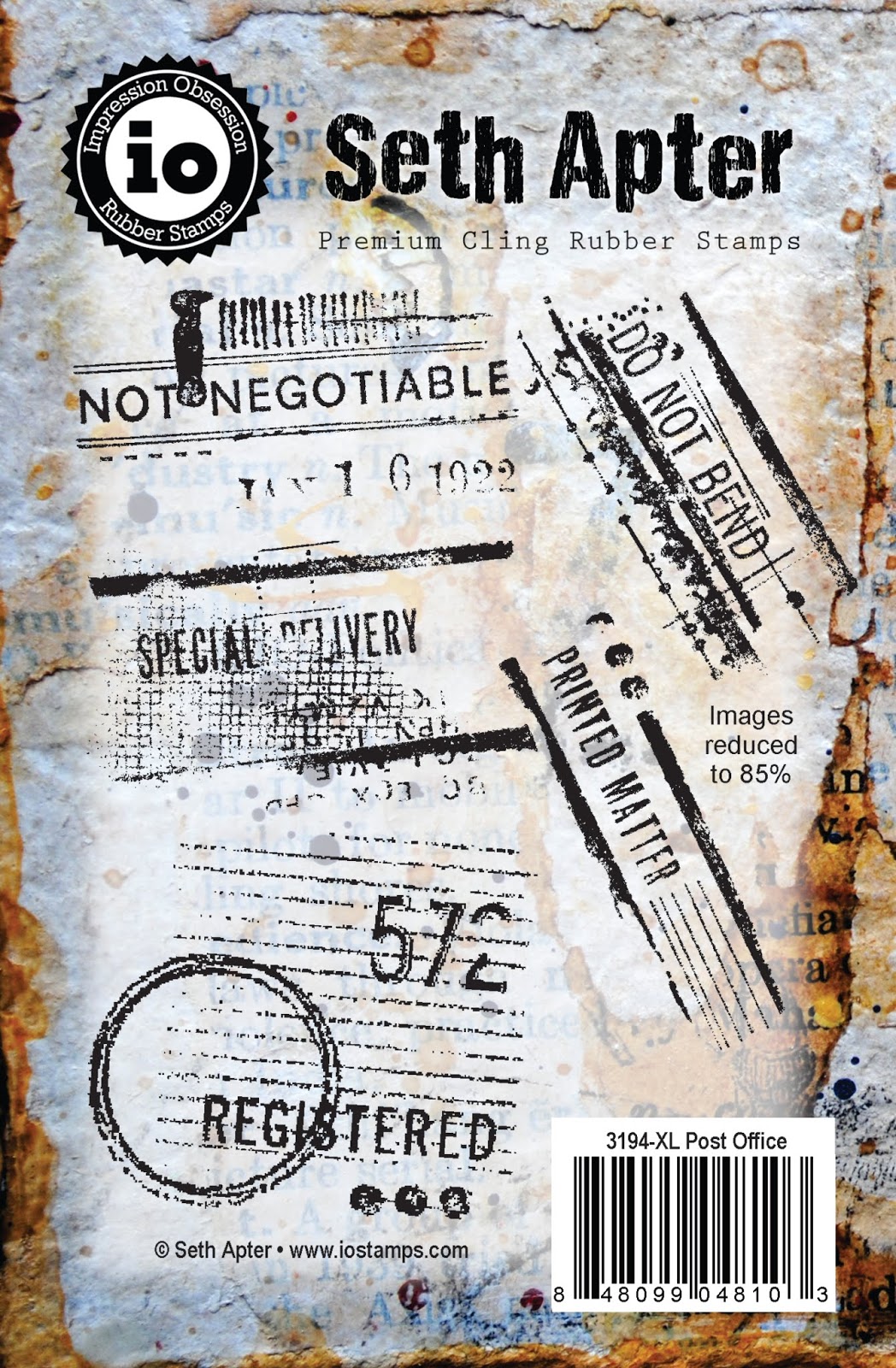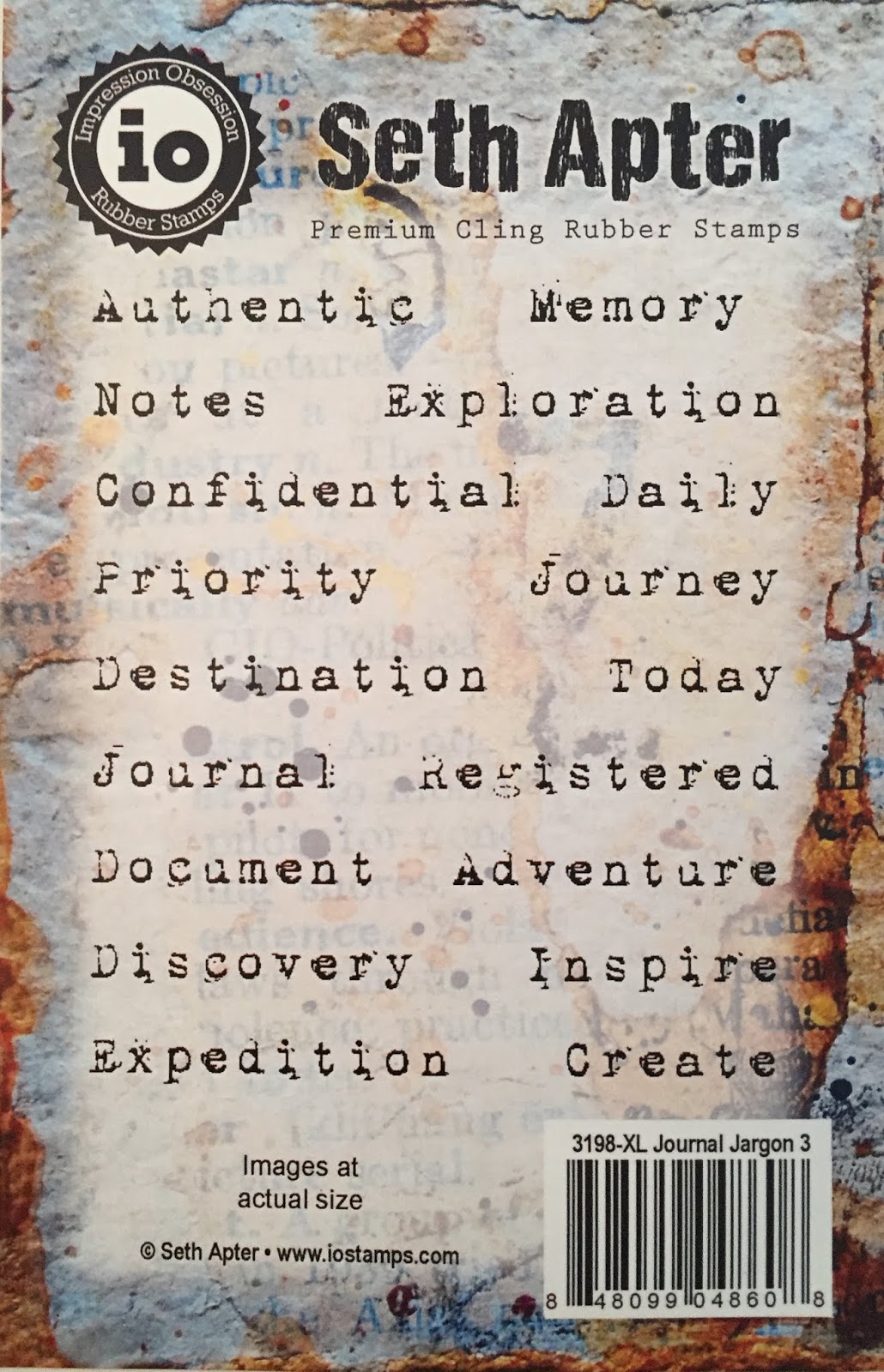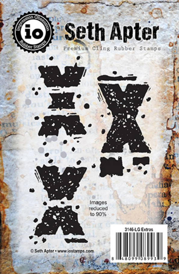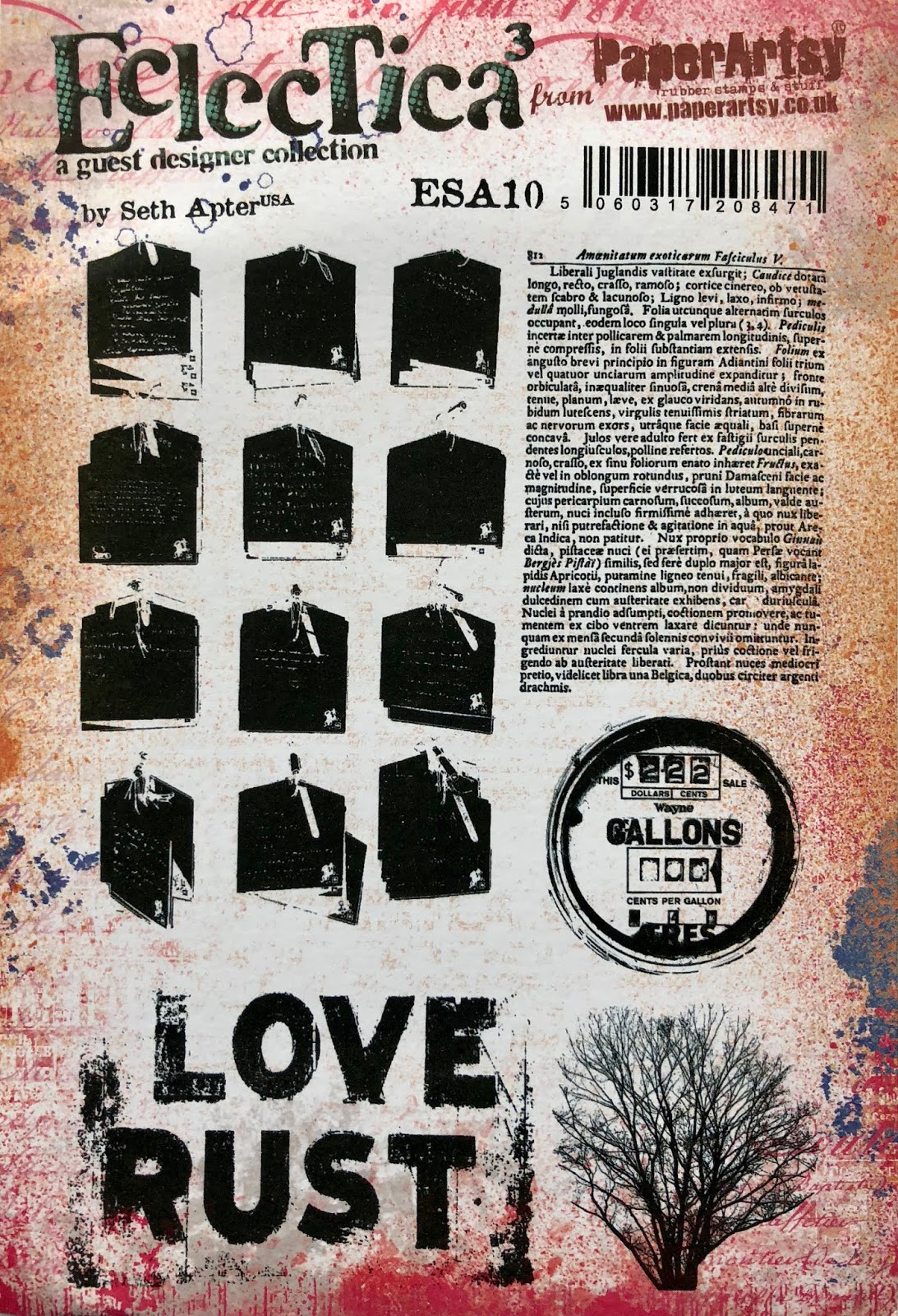 Images in Set 10 were created from photographs taken in the UK and the United States. Plus there is a stamp based on a photo of a vintage, latin text -- cause you cannot have enough text stamps of course. Images, clockwise from upper-left are from photographs of a wish-wall of tags, latin text, a gas pump sign, a leafless tree and some 3D letters spelling out a favorite phrase of mixed media artists both near and far.
