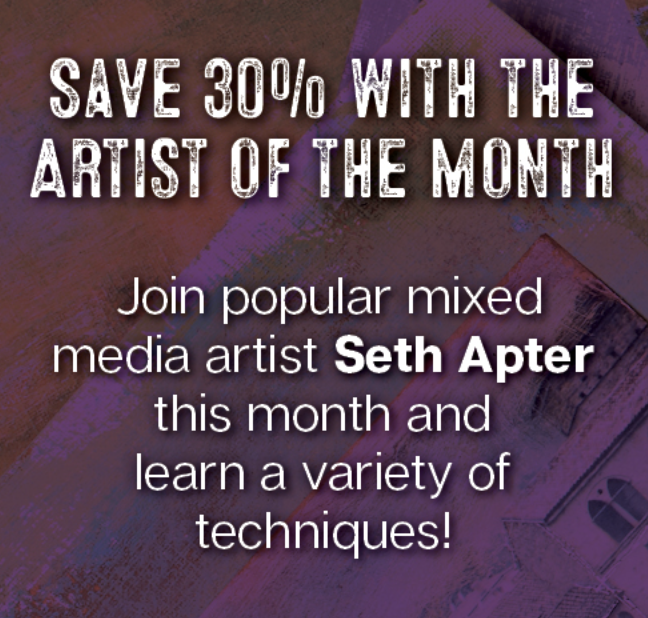 And...for the entire month, you can take 30% off my products in the Interweave shop. These include my workshop downloads, my webinar, the download of my book The Mixed Media Artist, and more.
