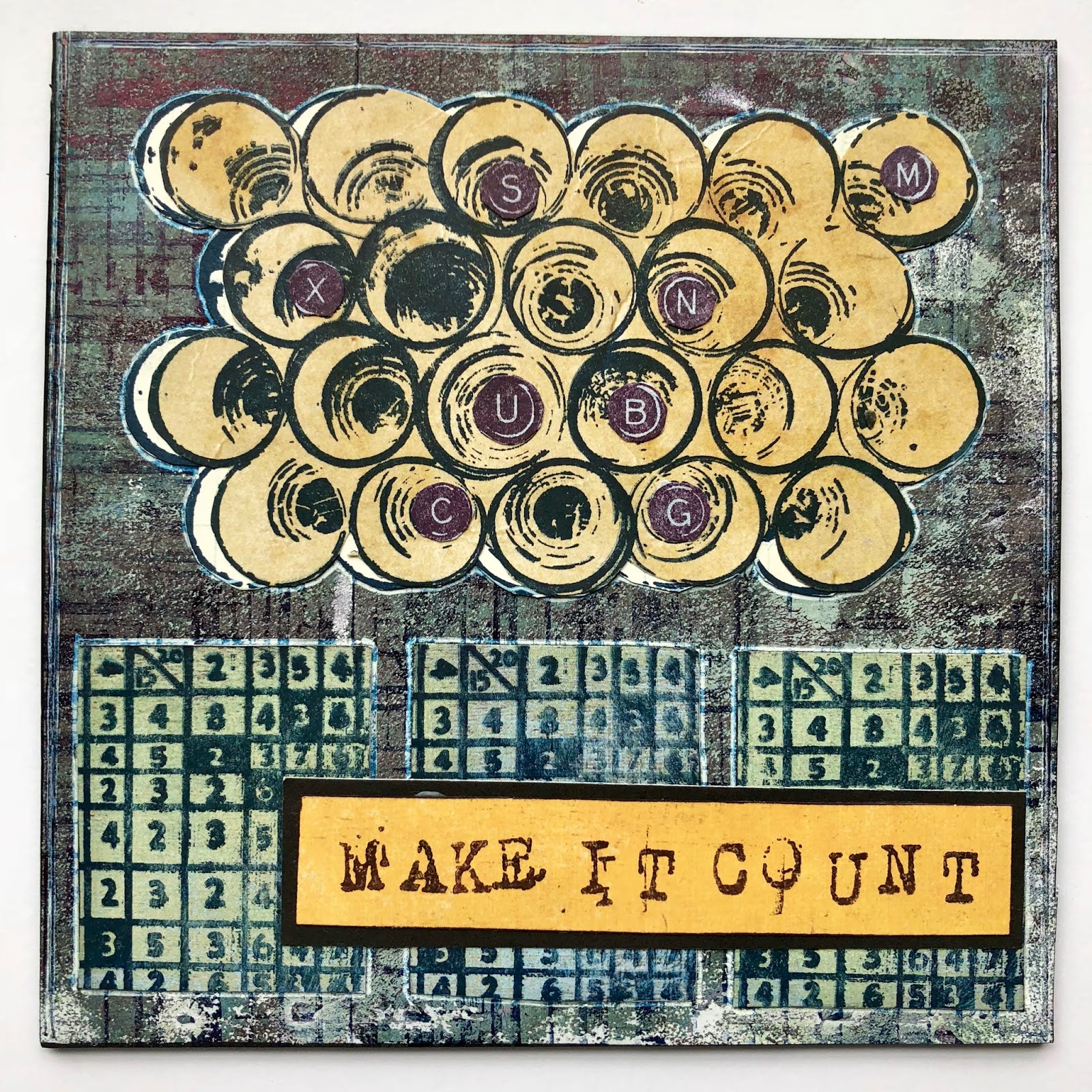 This artwork was made using all 4 stamps, each in a different way.