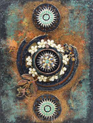 Sara Naumann shares a Facebook video in which she shows several embossing techniques to add Baked Texture effects to cards. But the process would work with any mixed media application equally well. She also includes step-by-step instruction in her blog post as well.