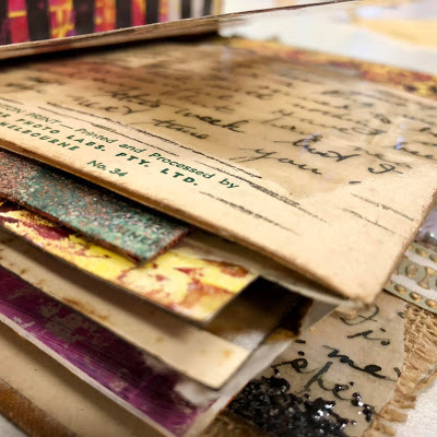 Several of my workshops were hosted by Fiber Arts Australia and my use of fabric bits and stitching, already a part of my art to a degree, has noticeably increased as a result. Happily I found time to create a good deal of work during my stretch in Australia and am itching to create more now that I am home. Here are just some of the pieces I made, with more posts to follow in the coming days.