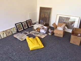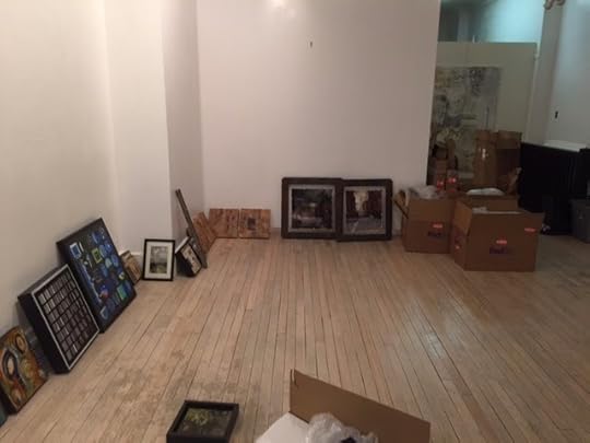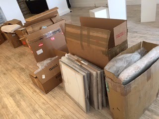 A lot of work went into the setup for this show, especially given the number of artists and the range of styles. Packages containing more than 100 works of art were received and opened.