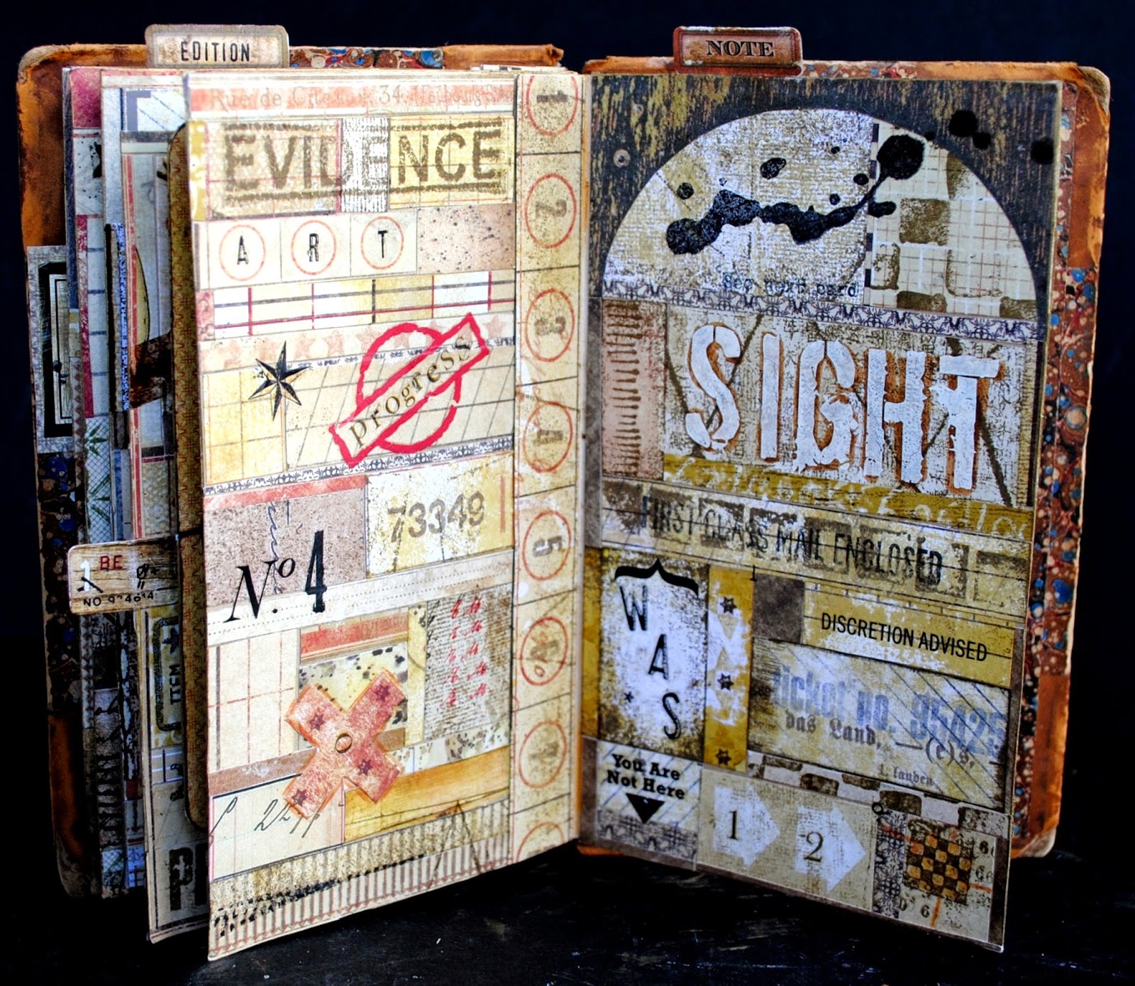 I often notice this when making the rounds through the Internet and coming across artwork that has been created using the stencils I have designed. I love when other artists come up with ideas that I would never have thought of. A perfect example is Pam Carriker's journal spread. She used stencils from my new StencilGirl Products release, The Urban Collection.