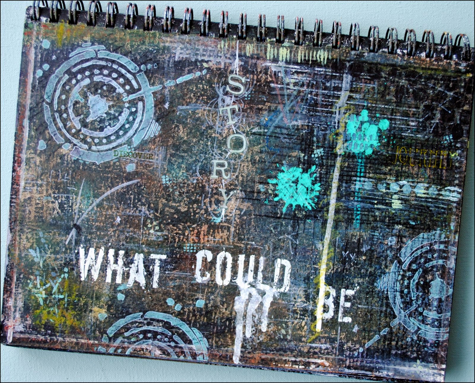 Pamala Young used my Past Present Future stencil to create the cover of a journal that she is sending to our active military personnel through the Journals for Heroes project founded by Edie Malin.