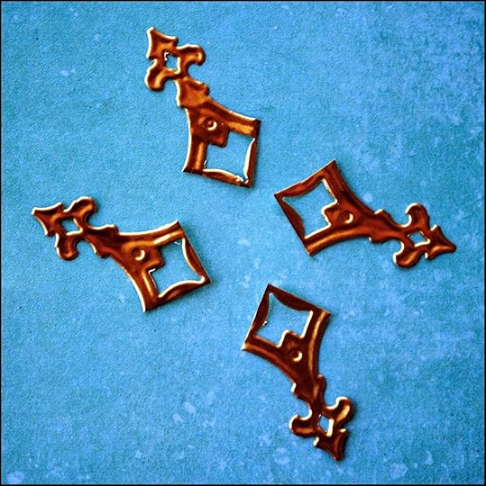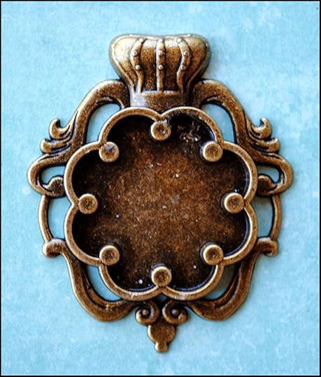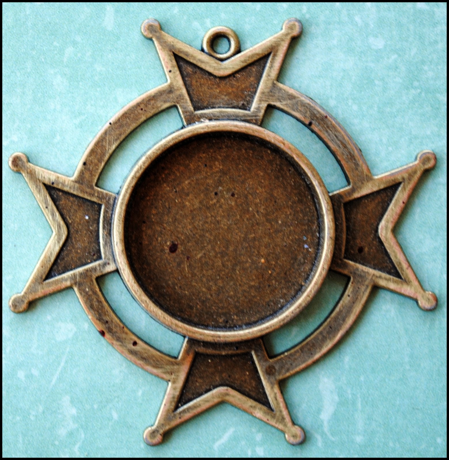 Heading to my stash of pendants and bezels from my collection of A Gilded Life items from Spellbinders, I chose one of my favorites: the large, bronze Iron Cross Bezel. My plan was to adhere a small metal brad to the ring at the top of the bezel.