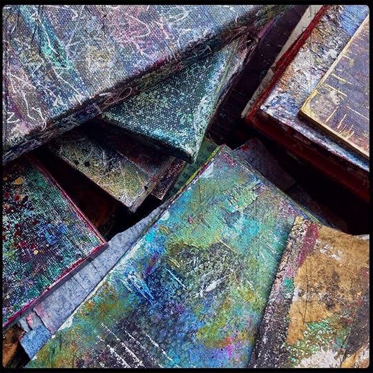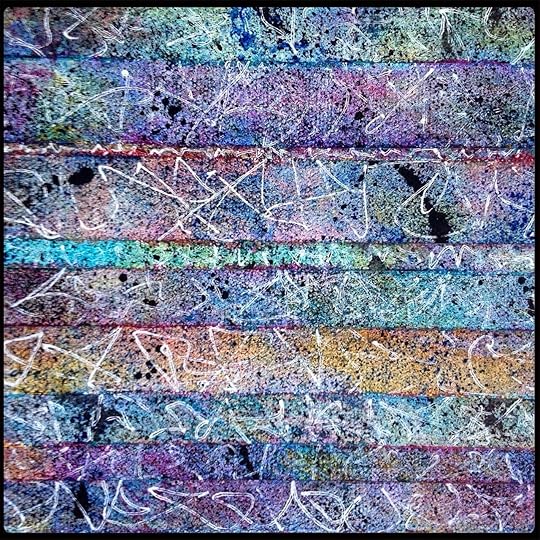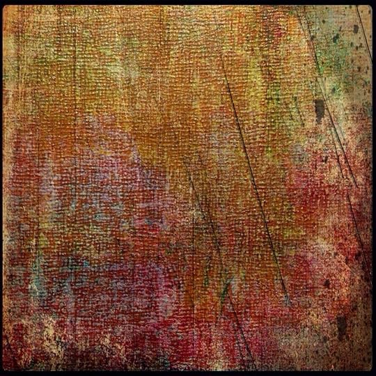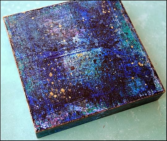 I could spend hours creating these backgrounds. Oh...I actually DO. 4 x4 inch cradled wood panel slathered in layers of gesso, acrylic paint, and acrylic glaze.
