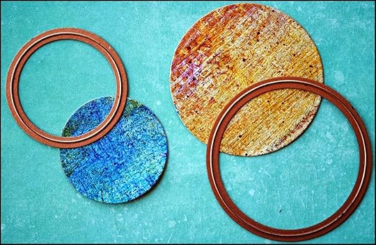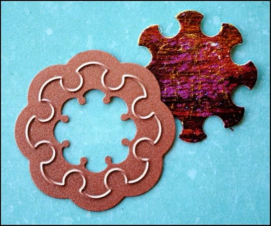 To add to the background of the piece, I cut a circle and a loop from Spellbinders Large and Small Standard Circle die sets. The paper was card stock that I altered.