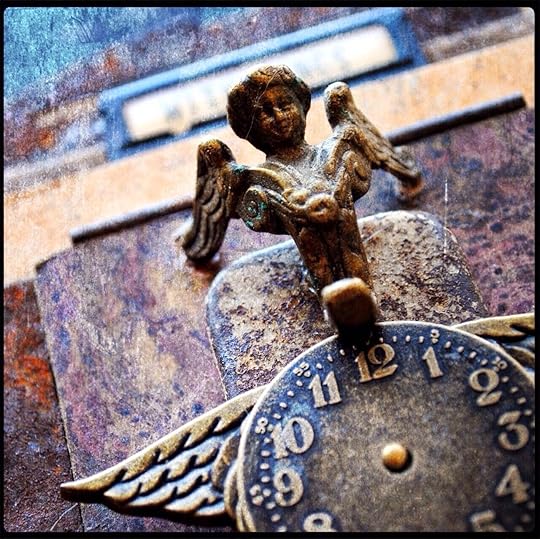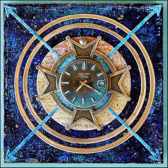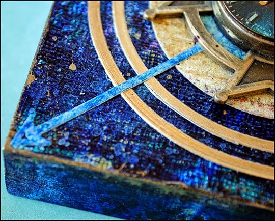As a way to make this artwork a one-of-a-kind, I hunted down the perfect addition from my collection of vintage objects: a watch face with the most beautiful patina.
