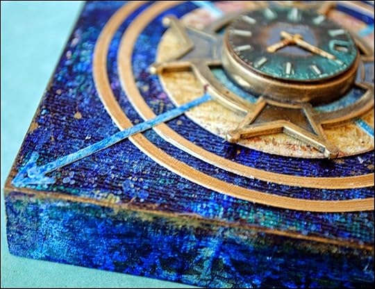 Other: cradled wood panel, gesso, paint brush, hand painted paper, vintage watch face, brad, adhesive, scissor