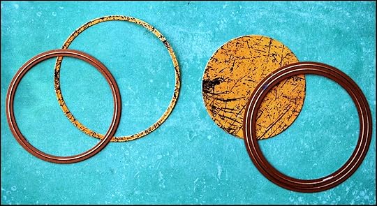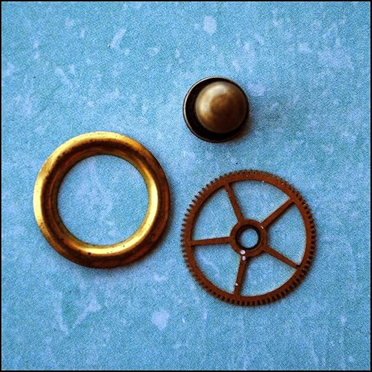 My pieces would never be complete without the addition of some hardware or found object. I chose three metal pieces that I would layer and inset into the bezel. The gear is from a vintage watch.