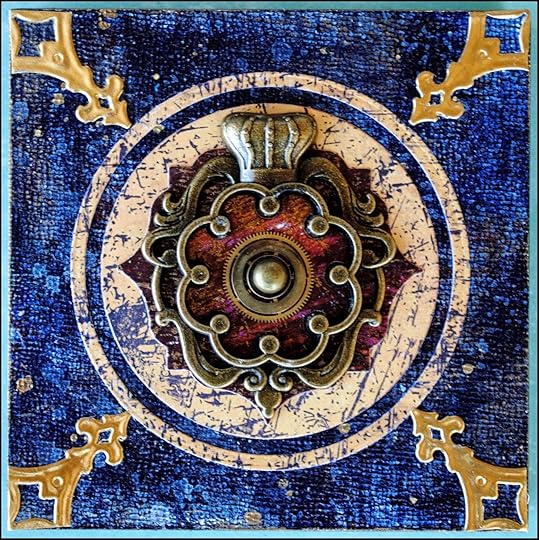 Other: cradled wood panel, gesso, paint brush, hand painted and stamped paper, metal hardware, adhesive, scissor