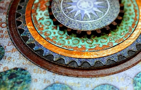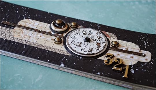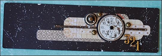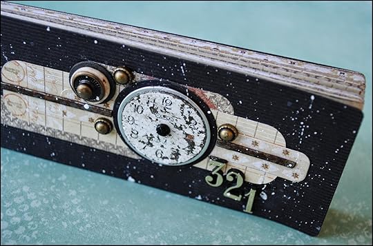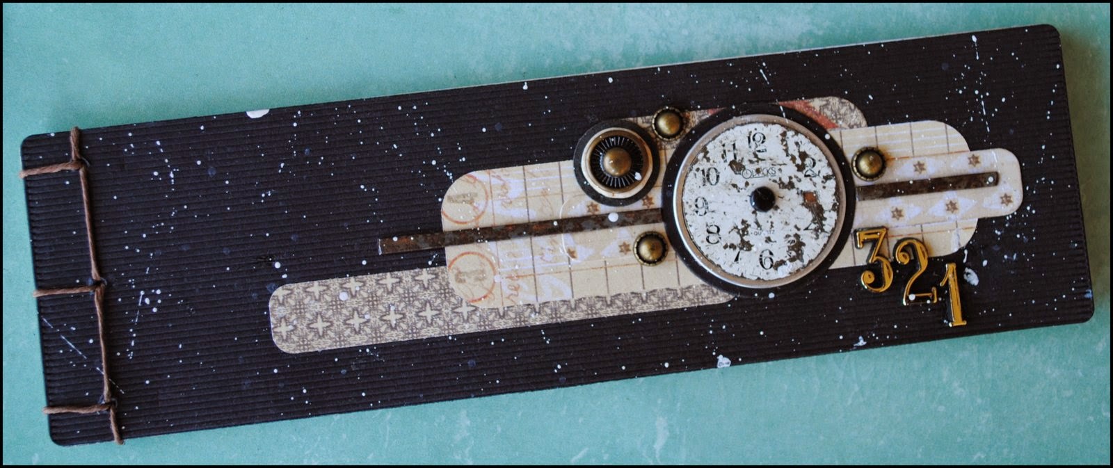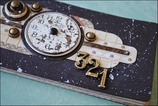 Sorting through my stash of found objects and embellishments, I chose a vintage watch face to be the focus of my cover design. I also used both a vintage element and a circle die cut from Spellbinders Standard Circles Large set to stack with the watch face.