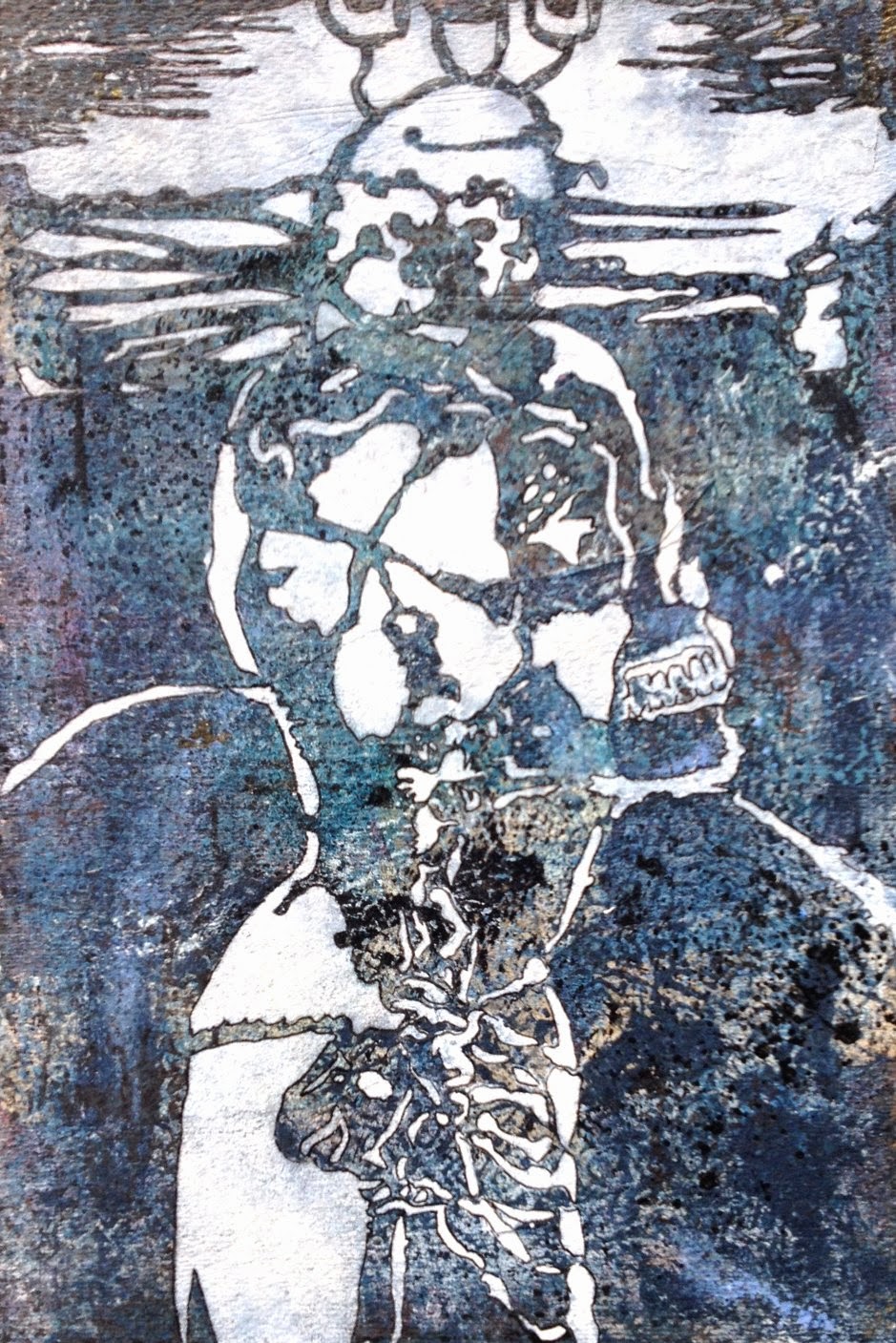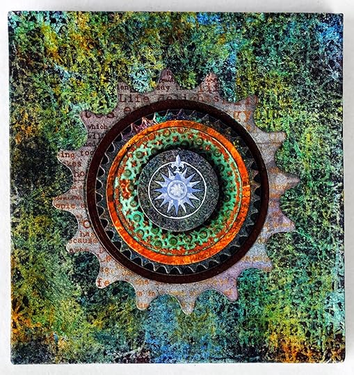 I started with a 7 ½ x 11 inch sheet of cold press water color paper, to which I added gesso, acrylic paint and acrylic glaze to create an abstract background.