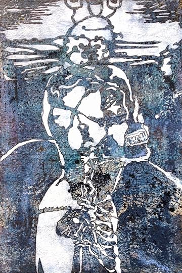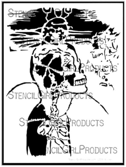 In honor of Orly, StencilGirl is hosting a blog hop and GIVEAWAY (details below) in which Orly and 9 other artists share creations made using her 5 newly released stencils. I was provided with Orly's 9 x 12 inch Subliminal Skull stencil. I love it - and all of her other designs, as they are real, raw and perfect for art journaling and mixed media work.