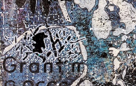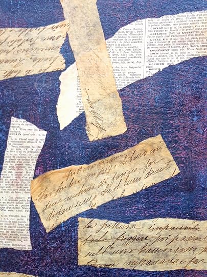 Once the surface was dry, I randomly glued on torn bits of vintage paper which was covered with either script or print.