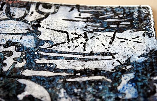 More acrylic paint and glaze were added to the surface, which was then sprayed with black ink.