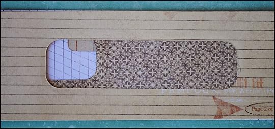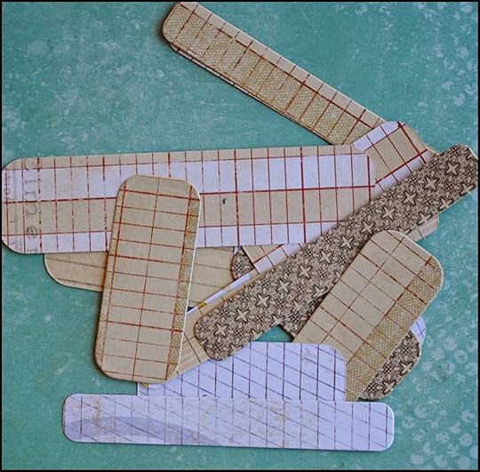 I will put aside most of the pieces from the cut window to use in another project but I will hold onto four pieces to use to decorate my cover.