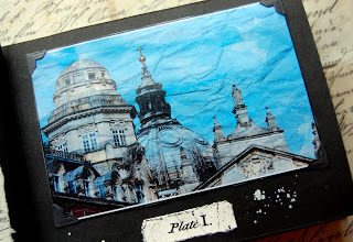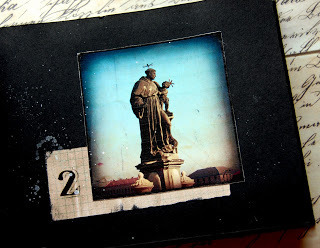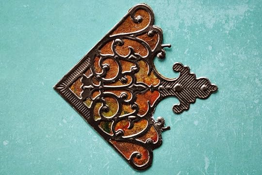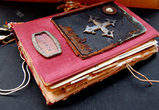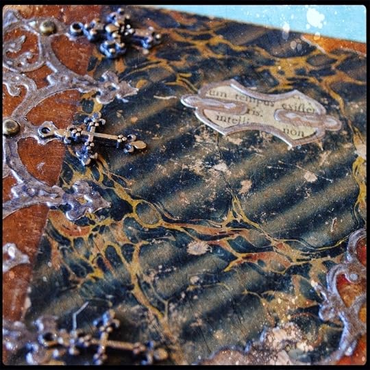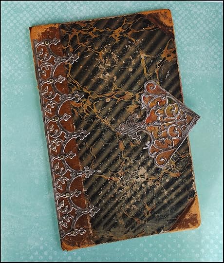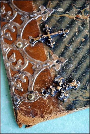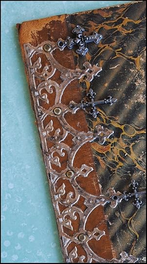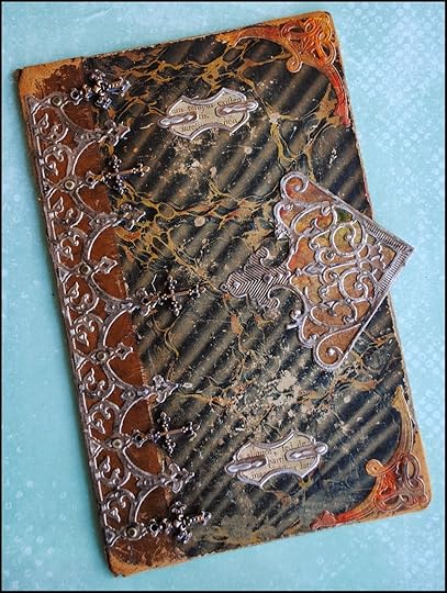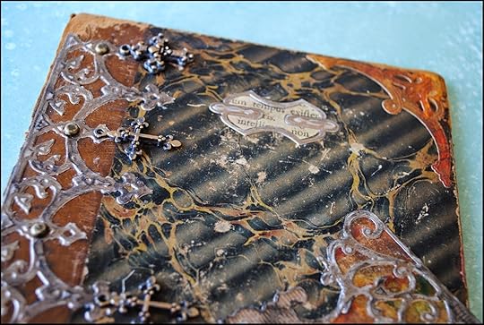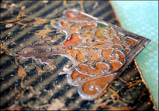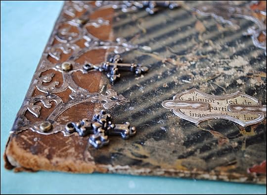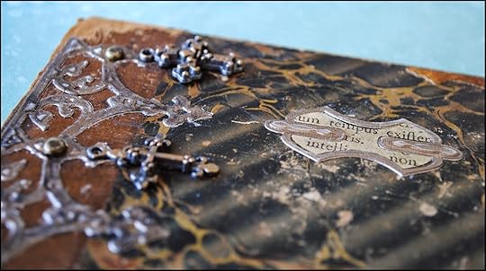 To match the aged looked of the book cover, I distressed the Relics using a sanding block and a bit of iridescent bronze acrylic paint.