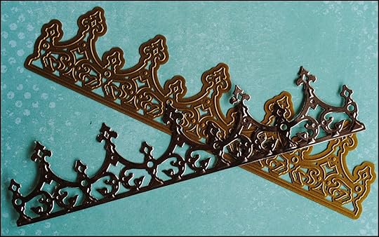 These elements were glued horizontally onto the points of the Petit Monarch die cut on the edge of the book cover.