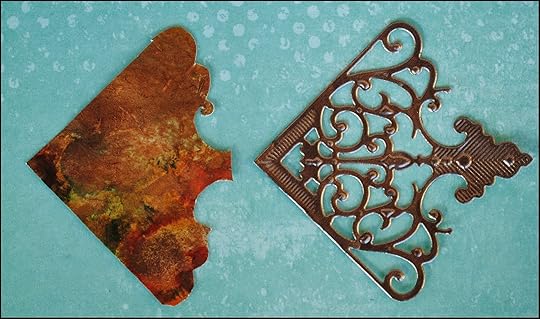 I used the Antique Corner die cut as a template and cut the same shape out of a piece of hand painted paper that I had.