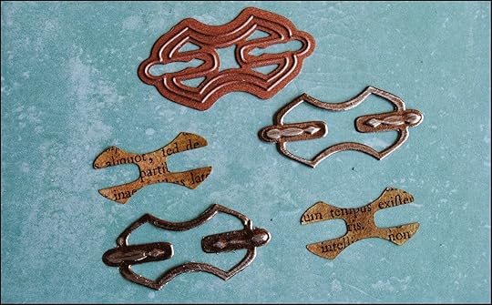 Continuing to embellish the cover, I used 5 elements from Spellbinders A Gilded Life Relics -- 2 of the same elements from set A and 3 of the same elements from set B.